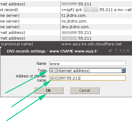 10. Edit Box. Need to modify the Type to A and Address IP.